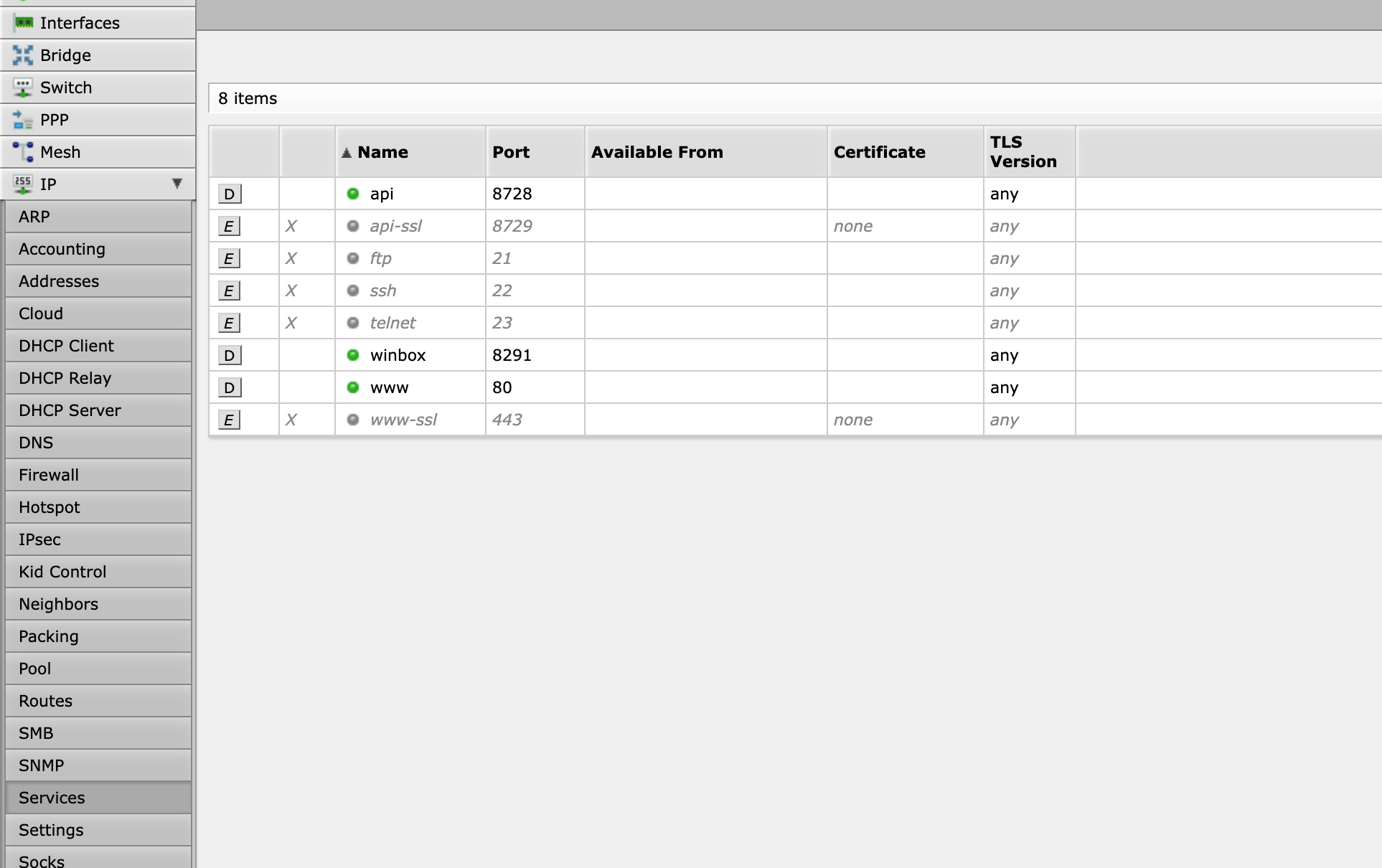 登录RouterOS管理后台,开启IP-Services-api