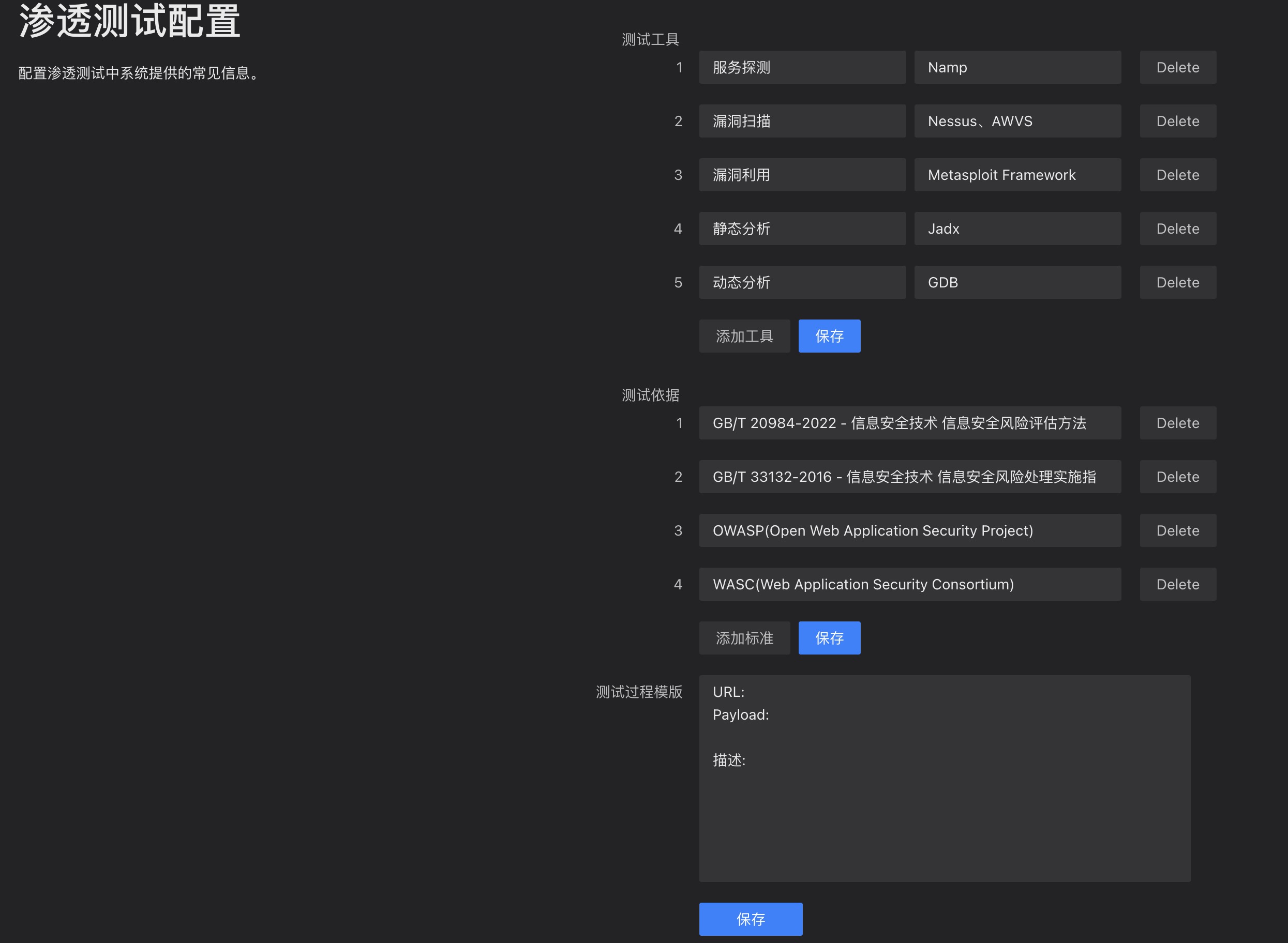 测试过程模版将在用户点击添加漏洞时进行初始化,可根据需求进行自定义更改。